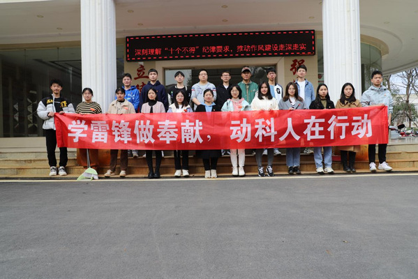 在第五十九个“学雷锋日”来临之际为引导全体党员弘扬雷锋精神,凝聚迈向新征程、奋进新时代的强大力量,34日,本科生一支部联合就业升学党小组开展“学雷锋做奉献,动科人在行动”主题党日活动。