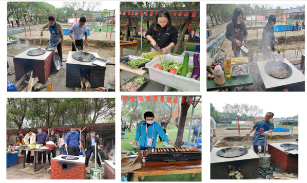 公司领导积极带头,带领大家烧火、做饭、烧烤;各教研室老师纷纷亮出自己看家本领。大家分工合作,通力协作,做出一道道丰盛的菜品,四周也充斥着孩子们银铃般的笑声。