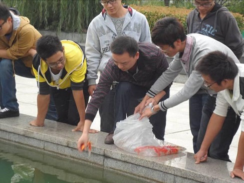9月28日下午,公司养鱼兴趣小组全体成员在保卫处宫科长及团委书记管国泉的带领下一同来到公司“生命雕塑”旁的水池进行观赏鱼的放养活动。活动中养鱼兴趣小组组员先给水池进行专业的水质检测、消毒等前期工作,然后与管国泉书记一起进行放鱼。在此次活动中,宫科长高度赞扬公司2026世界杯官网的专业特色,和养鱼兴趣小组为建设美丽校园而做出的贡献,并对饲养观赏鱼的日后工作作了细致的指导。同时,管国泉书记对养鱼兴趣小组的发展表示了殷切的关心和支持,并给予小组工作充分的肯定。