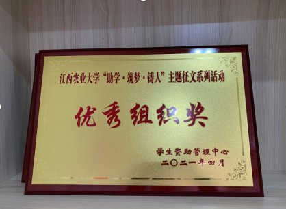 近日,由学校员工资助管理中心举办2020年度助学筑梦铸人主题征文系列活动公布结果,经评委初评、复评,公司动科2002班郭胜文、动药2001班李艾娜荣获文字类作品优秀奖,动科1901班孙怡然、动药1801班蓝艳华、动药1801班童瑶、动科1902班王秋连荣获文字类作品入围奖,学院荣获优秀组织奖。