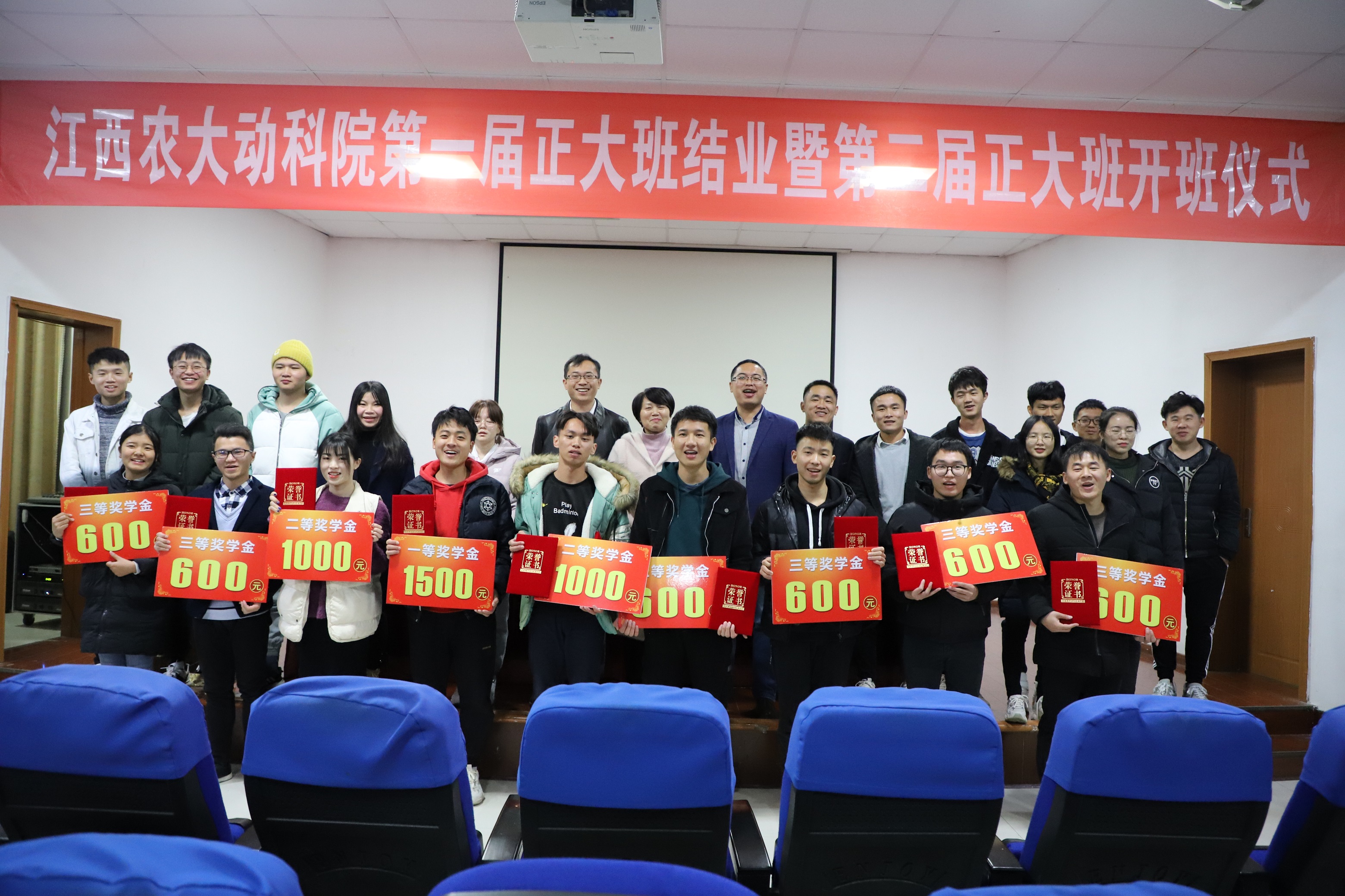 “正大班”新老学员代表分别上台发言,感谢学院和企业搭建的平台,他们表示将培养良好的职业道德,努力学习,深化课堂所学的理论知识,为强农兴农打下坚实的基础。典礼最后,领导们为第一届“正大班”的优秀学员颁发荣誉证书并合影留念。