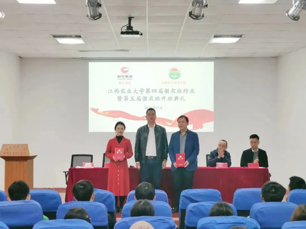 为拓宽校企合作深度,加强同学们对行业知识的了解,加固未来就业的基础,11月15日,公司于201报告厅举行第四届傲农“精英”班结业暨第五届傲农精英班开班仪式。公司经理胡国良,党委副书记陈小志,副经理郭小权,傲农集团监事、人力资源中心总经理匡俊,傲农集团人力资源中心人才开发部总监罗波文,以及第四、五届傲农“精英”班全体学员参加仪式,学工办杨劲老师主持会议。