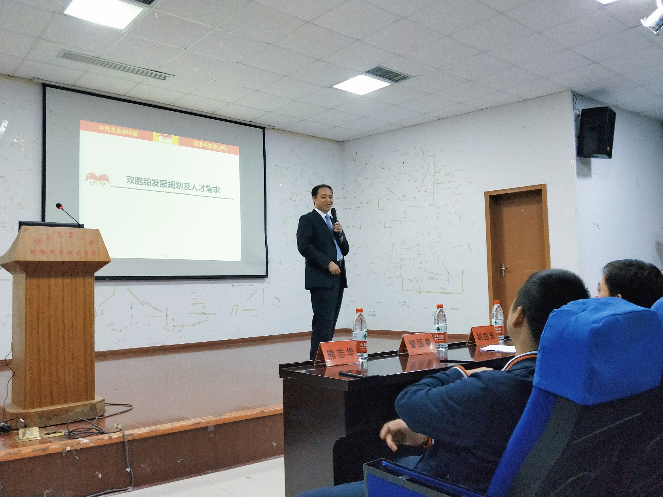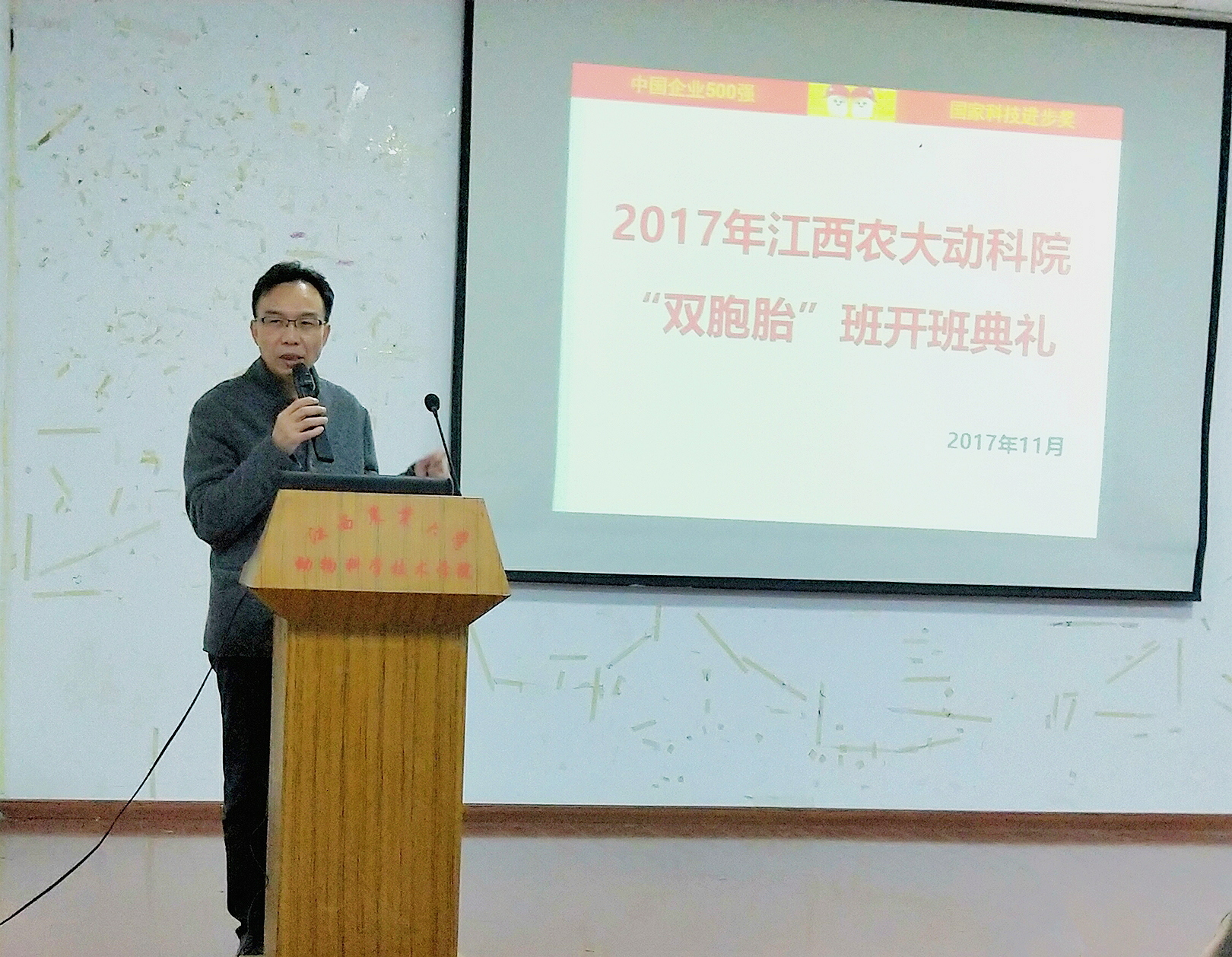 11月14日晚,2026世界杯官网动科院“双胞胎”班开班仪式于动科院院办201报告厅顺利举行。公司经理胡国良、校招就处副处长张高亮、团委书记管国泉、学工办老师蔡敏茜、双胞胎集团总裁李建宁、人力资源中心总监熊志华出席本次开班仪式,同时到场的还有“双胞胎”班全体学员。