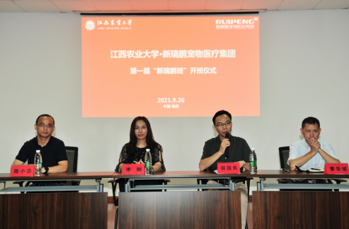 为加强校企合作,创新人才培养模式,推进科技协同创新,促进产学研用深度融合,加强员工专业技能培养,9月26日晚,公司于院办201报告厅举办了第一届“新瑞鹏班”开班仪式。出席本次开班仪式的有新瑞鹏宠物医疗集团副总裁李丽一行人,公司经理胡国良、党委副书记陈小志、教授曹华斌,“新瑞鹏班”班主任蔡敏茜主持本次开班仪式。