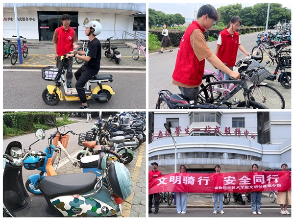 活动中,青年志愿者身穿红马甲在交通主要道路口,对驾驶非机动车人员未佩戴头盔、逆向行驶、超速超载等不文明骑行行为进行劝导,同时提醒往来车辆减速慢行,向过往同学发放安全骑行宣传册,宣传文明骑行、规范停车的重要性。志愿者们分工明确,清捡了道路及绿化带垃圾并将各自负责区域内未规范摆放的非机动车进行调整,将占道的车辆转移至停车区。不久,路边的车辆便全部摆放得整齐有序,为校园增添了一道亮丽的风景线。
