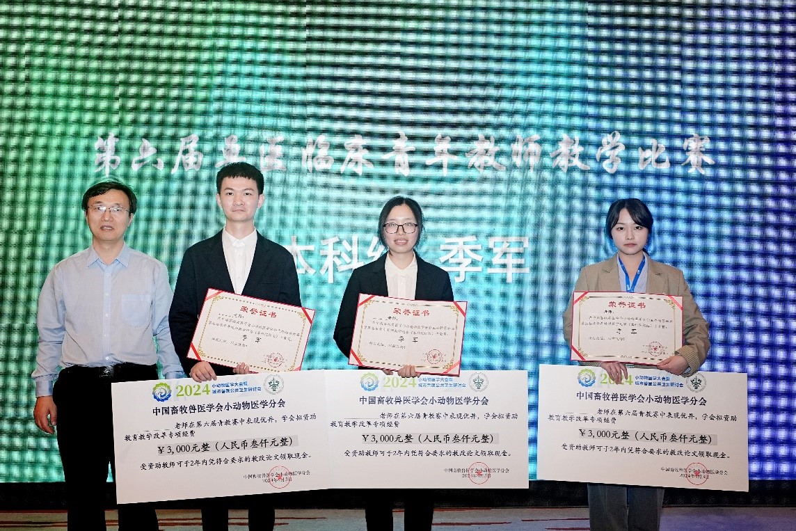 为了全面贯彻党的教育方针,落实立德树人根本任务,鼓励各农业院校临床兽医专业青年教师钻研教学、提高教学水平和教学质量,鼓励青年兽医师潜心临床、相互切磋,搭建青年教师与兽医师教学技能和教学经验的交流平台。中国畜牧兽医学会小动物医学分会举办第六届全国兽医临床青年教师教学比赛,公司动物医学专业教师杨帆博士赴成都参加比赛,斩获了大赛季军的好成绩。