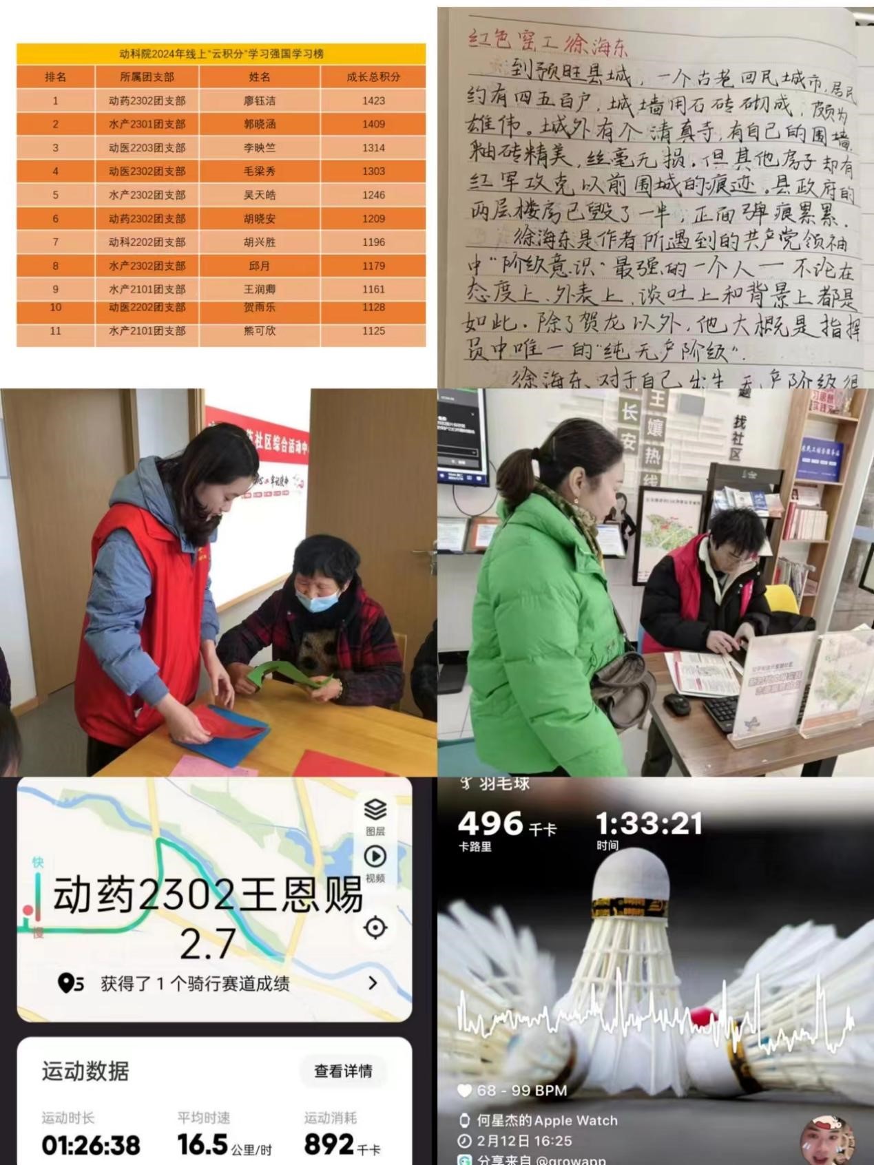 运动健身强体魄。生命在于运动,同学们积极参加“龙腾虎跃”运动健康打卡活动,个人每次打卡跑步里程均超过1.20公里,最远距离达8公里。除跑步外,同学们还开展了多种运动,如羽毛球、乒乓球、篮球等,每日运动时间均超过30分钟。学子们强健体能,携青春汗水,传递青年积极昂扬新风貌, 让寒冷的假期充满朝气与热血。