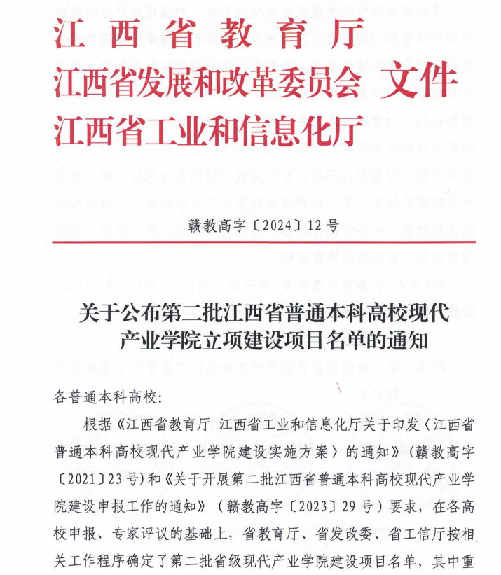 赣教高字〔2024〕12号 关于公布第二批江西省普通本科高校现代产业学院立项建设名单的通知(盖章正式版).pdf