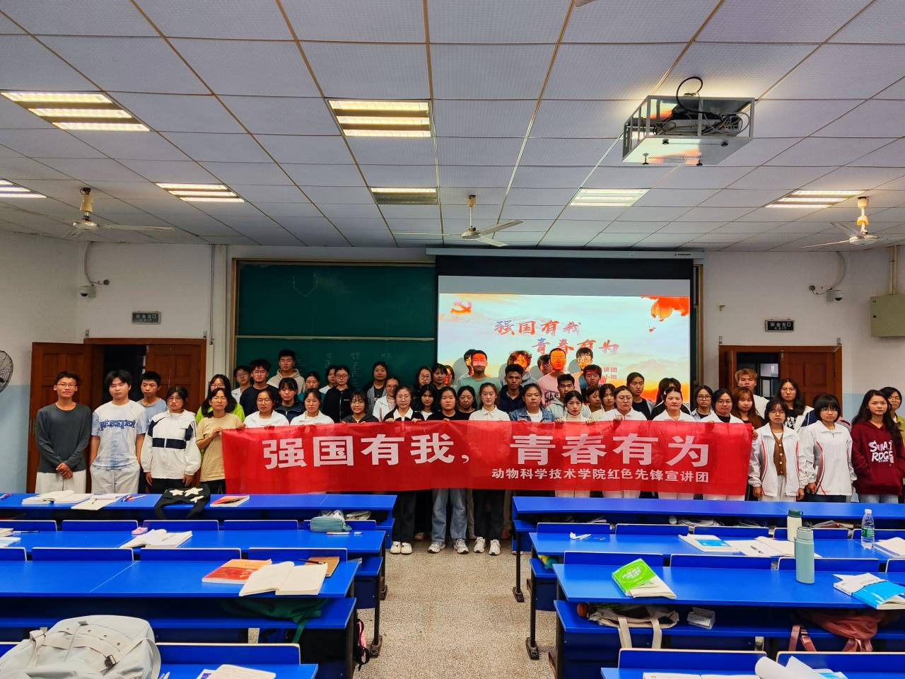 为深入学习宣传习近平新时代中国特色社会主义思想,全面贯彻落实习近平总书记对青年工作的重要指示精神,宣讲团紧密围绕习近平总书记对青年学子的殷殷嘱托,结合专业实际,从“树理想,让青春因梦想而激扬”“勤学习,让青春因博学而厚重”“勇奋斗,让青春因拼搏而成长”“甘奉献,让青春因无私而精彩”四个方面,用大众化、通俗化语言讲理论、讲政策、讲事例,以“小切口”反映“大主题”,生动展示了动科学子昂扬向上的精神品格,大力营造团员青年“人人学先锋、人人争先锋、人人是先锋”的浓厚氛围,勉励动科学子始终沿着习近平总书记擘画指引的加快建设农业强国奋勇前行。