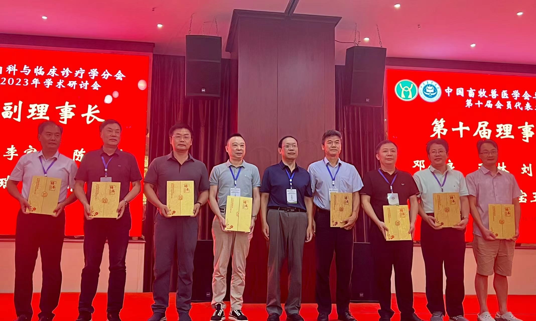 公司青年教师庄煜和杨帆在会上分别作了题为“丁酸钠通过ROS/GPX4途径抑制铁死亡改善FLHS蛋鸡肝细胞脂肪变性”和“钒诱导鸭肾线粒体与内质网交互紊乱的作用机制研究”的学术报告。青年教师庄煜和博士生黄橙、彭成诚的会议论文荣获了“中国畜牧兽医学会兽医内科与临床诊疗学分会”第十届会员代表大会暨2023年学术研讨会的优秀论文奖。此外,公司胡国良教授被聘为“中国畜牧兽医学会兽医内科与临床诊疗学分会”第七届理事会的学术顾问,郭小权教授当选为中国畜牧兽医学会兽医内科与临床诊疗学分会第十届理事会副理事长。