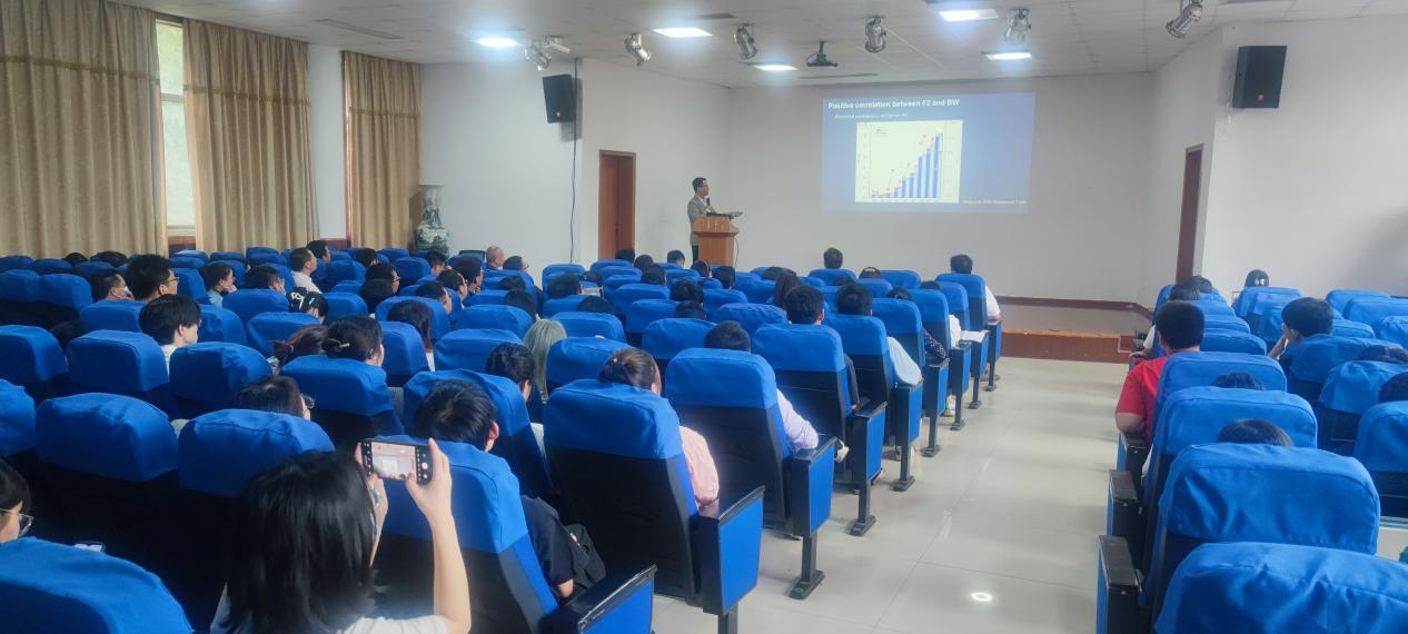 赵江潮教授为全院师生做了题为《Translating basic microbiome research into animal production》的学术报告,介绍其课题组利用多组学方法(宏基因组、宏转录组,宏代谢组等),结合生物信息学、培养组学等交叉学科技术,在人类及家养动物肠道和呼吸道微生物与健康的相关性、肠道微生物对动物生产性能的影响等领域所取得的主要科研成果。鄢新民主任做了题为《肠道微生物与临床疾病》的学术报告,介绍了其课题组在粪菌移植治疗糖尿病、肿瘤、儿童自闭症等方面所取得的进展。学院师生近150人参加了报告会,大家就肠道菌群研究与应用的相关问题与两位教授(主任)进行了热烈深入的探讨。