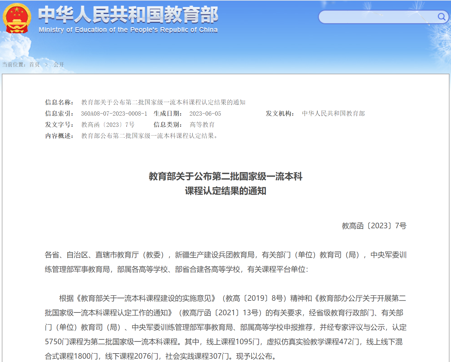 6月12日,教育部正式公布第二批国家级一流本科课程名单,共有来自804所本科高校的5750门课程获得认定。公司李勇教授负责的《畜禽(动物)解剖学》课程荣列榜中,成功入选国家级线上线下混合式一流本科课程,这是李勇教授荣获的第二门国家级一流本科课程。这项重要教学成果反映学院在课程建设方面取得了又一喜人成效,实现了该类型国家级一流课程的突破。