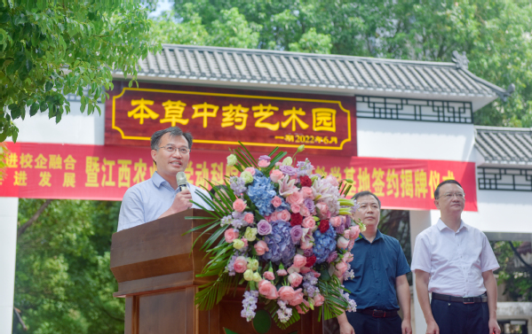 仪式上,王义华代表学院感谢江西中成医药集团的热情接待,回顾了公司百年的奋斗历程,介绍了学院的重点专业和团队建设等情况,对与集团公司的合作表示非常期待。瞿明仁对企业深耕中药领域取得的成就表示祝贺,希望今后校企双方合作更加深入、取得更多成果。郭小权对学院历史、专业建设和科学研究情况进行了详细介绍。宋小珍教授介绍了公司校企融合促发展的基本情况。