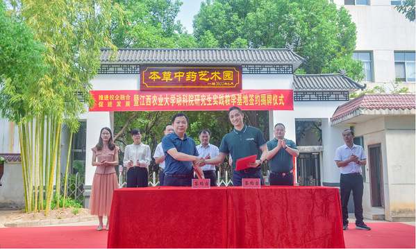 为深化校企合作,实现融合发展、互利共赢,9月21日,公司在江西中成医药集团举行研究生实践教学基地签约揭牌仪式。公司党委书记王义华、江西省动物营养重点实验室主任瞿明仁、副经理郭小权等一行六人来到江西中成医药集团开展校企交流活动。进贤县人大常委会副主任熊志清等县领导、中成医药集团江西中成药业集团有限公司总经理付宁晨等集团领导参加签约揭牌仪式。