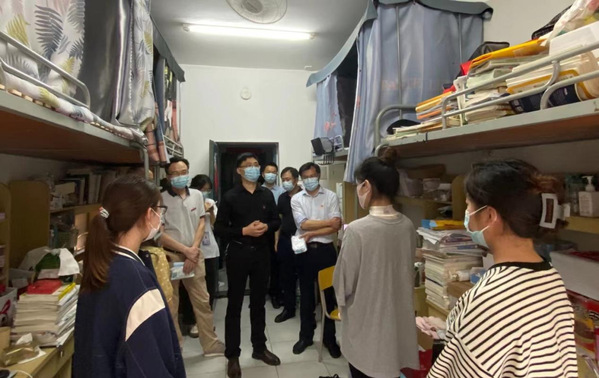走访中,张高亮详细询问关心同学们目前的学习与生活情况,嘱咐同学们要严格遵守学校疫情防控相关规定,做好疫情防护措施,有任何困难可以随时向学校和学院反映。鼓励员工要合理安排好时间,保持健康的心态,认真上课,适当运动,积极投身疫情防控工作志愿服务活动,把握美好年华,在青春的赛道上奋力奔跑,争取跑出当代青年的最好成绩。