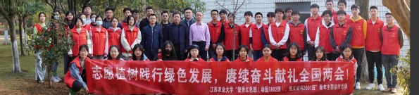 绿色见底蕴,山水见初心。在今年的全国两会中,生态文明的持续建设是重点关注的内容之一,生态环境质量的大力改善更是发展“巨轮”的关键引擎。通过此次植树活动,“俊秀红色班”的同学们将农科学子的情怀厚植于土地中,借助奋斗之“林”献礼全国两会,争做保护绿色生态环境的排头兵。