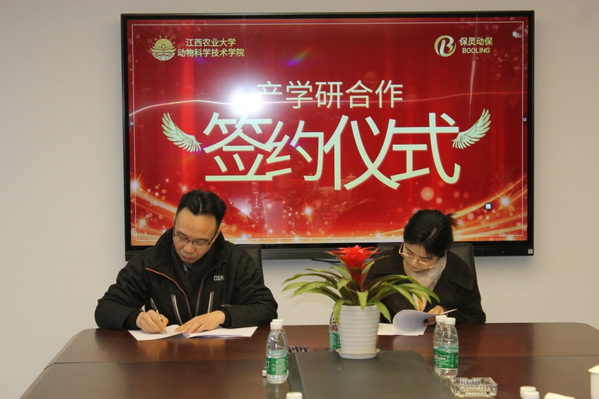 为积极响应习近平总书记在党的十九大报告中提出的“建立以企业为主体、市场为导向、产学研深度融合的技术创新体系”的号召,1月9日,公司经理胡国良、副经理郭小权、副经理吴小波及动物药学教研室主任刘宝生一行专程前往江西保灵动物保健品有限公司(以下简称:保灵动保)举行“产学研合作基地”签约揭牌仪式。江西保灵动物保健品有限公司董事长许霄怡等出席仪式。