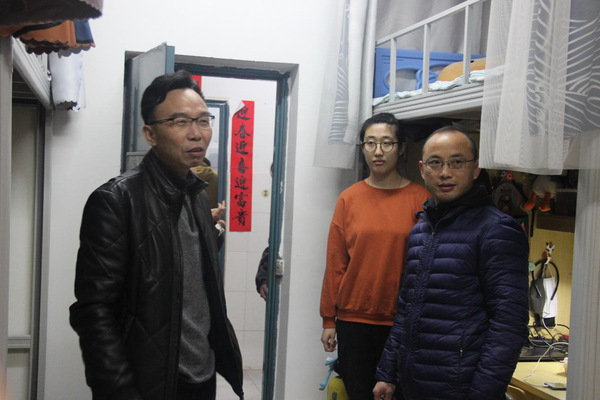 3月8日,是公司员工春季开学报到的第一天。为深入了解学院员工入学状态,调研员工寝室安全状况,号准员工“安全脉”,公司党委书记张高亮、经理胡国良、党委副书记陈小志、副经理郭小权深入员工寝室,实地了解员工的学习生活情况,带去学院的关心和问候,团委学工办老师陪同看望。