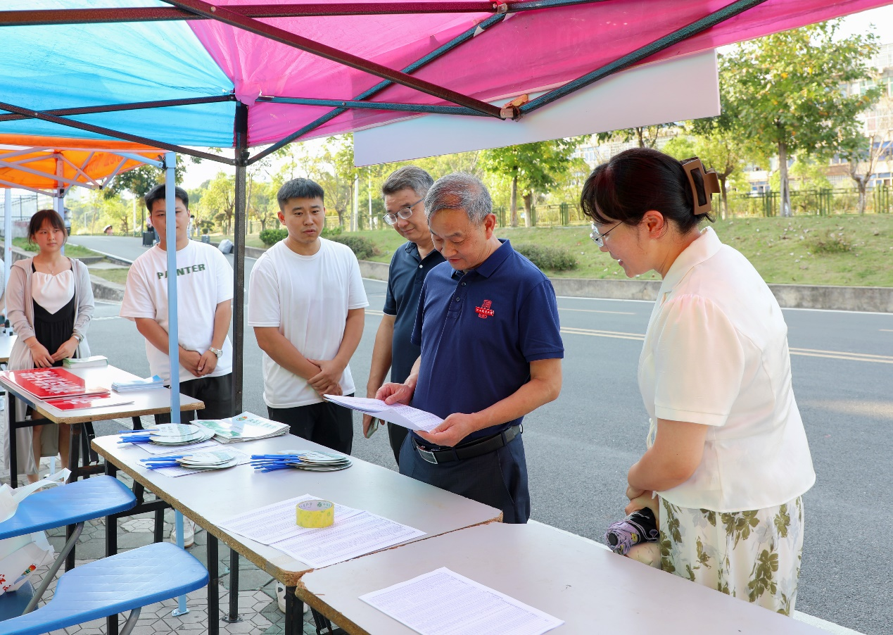 报到当天,员工党员与志愿者们早早到位,迅速搭建帐篷、布置桌椅、设立指示牌,以饱满热忱迎接每一位新生及家长,提供引导、咨询及搬运行李等服务;辅导员和班主任们在现场忙碌穿梭,及时为新生介绍解答;学院领导带队深入新生宿舍,与新生进行面对面的亲切交谈,送上关怀叮嘱。师生们以暖心之举传递关爱与温暖,使初入校园的新生迅速获得归属感,融入老员工活。