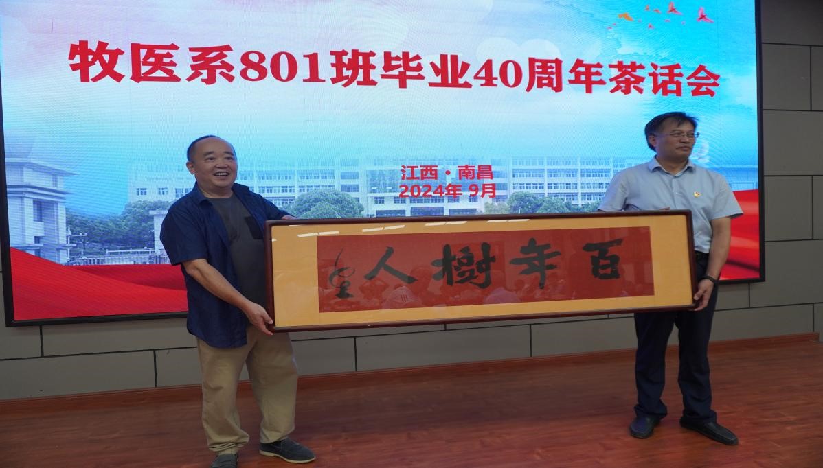 在温馨氛围中,赣州朱师傅控股有限公司刘土生代表同学们向学院赠送了一幅“百年树人”的题字,表达了对学院教育事业的崇高敬意和美好祝愿。这幅题字不仅是对学院过去几十年教育成果的肯定,更是对学院未来发展的美好期待。
