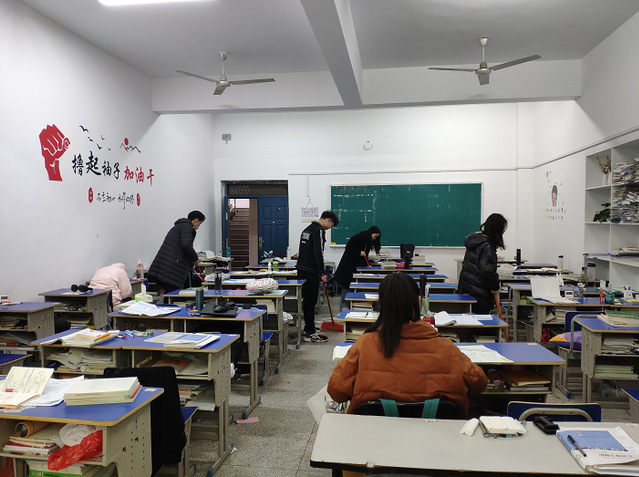 冬日自习不畏冷,窗明几净暖人心。党小组以人文关怀感染员工,在最后冲刺阶段不忘给考研学子提供良好学习环境,组织党小组党员进行“院办考研自习室打扫”活动,为紧张备考、刻苦努力的学子们创设更整洁的学习环境。为不影响考研学子的学习和休息,静待最后一名考研学子离开自习室,党小组组织的“打扫队伍”迅速进入到自习室中进行清扫工作,大家分工明确,共同合作,快速高效完成清扫整理,通过志愿服务增强党员志愿服务意识,牢固树立“全心全意为人民服务”的宗旨,切实走进员工群体中,践行初心,服务同学。