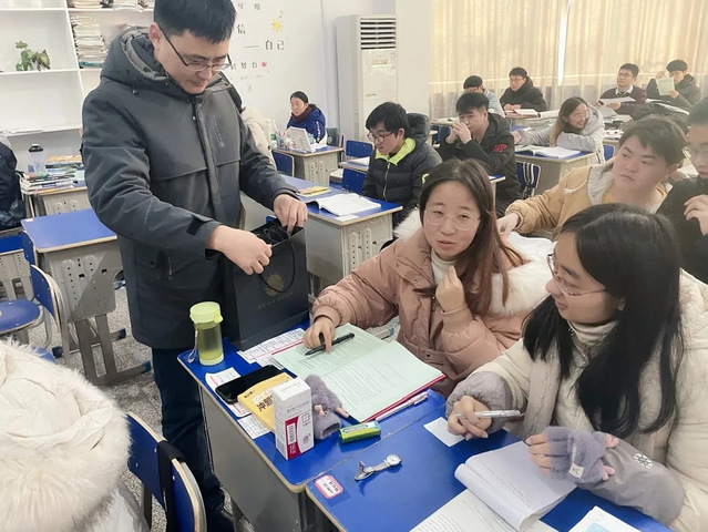 温情祝福手上纸,励志标语人生路。冬至如约而至,印有“星光不负赶路人、时光不负有心人”口号和班级、姓名的礼包也如期送至全体毕业生手中,一本笔记本扉页有数,一只笔水墨有限,虽难陪伴大家一生长路,但承载着动科院对毕业生美好祝福和期盼,希望342名毕业生都能在升学、就业、考公的路上不负努力、不负辛劳,记录下自己来日可回首的每个精彩瞬间。党小组从前期策划到后期发放礼物认真细致、思虑再三,加班加点将毕业纪念品按照班级排列,邀请院领导和工作人员一同将一份份温暖送至毕业生手中。