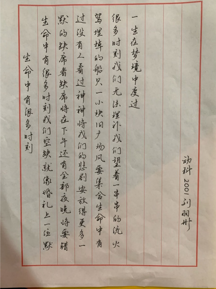 此次书画大赛与作文大赛共收到作品500余份,分别以“青春如诗,为疫而书”、“书写红色记忆,致敬红色经典”为主题,用书画作“试金石”,以写作为“敲门砖”,多方面检验公司新生的即时写作水平和书画创作能力。同学们泼墨挥毫、思绪云骞、各倾陆海用自己的方式表达了自己的爱国之情。最终,动科2001班刘羽彤、动医2002班黎铭心、惟义动科2001班王甜与动医2001班殷理翔 分别斩获书法组、绘画组和作文组第一名。