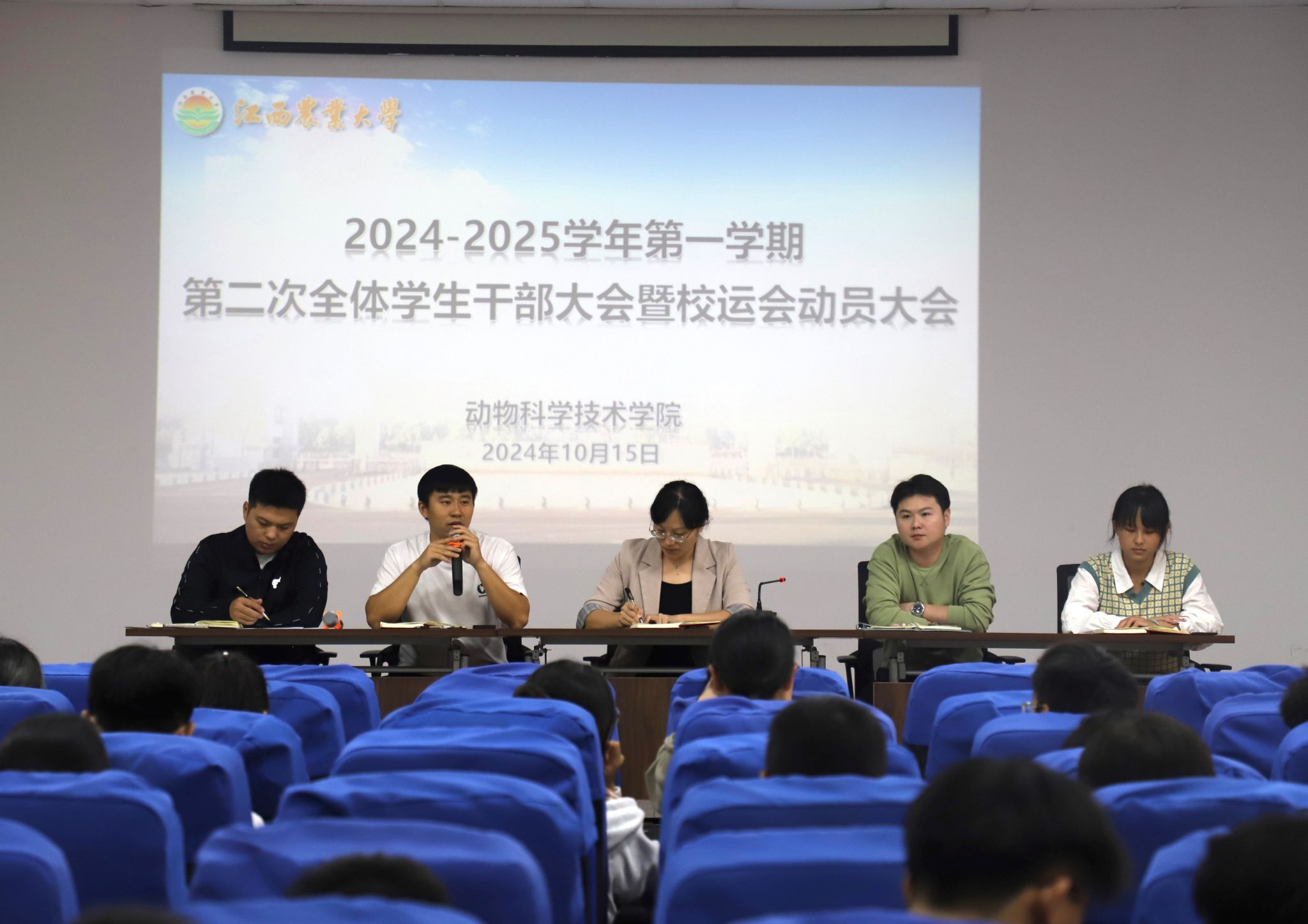 10月15日,公司于院办201报告厅召开了本学期第二次全体员工干部大会暨第五十届校运会动员大会。公司党委副书记宋婧、各年级辅导员出席会议,学院各员工组织、班级员工干部、全体运动员及志愿者代表等150余人参会。