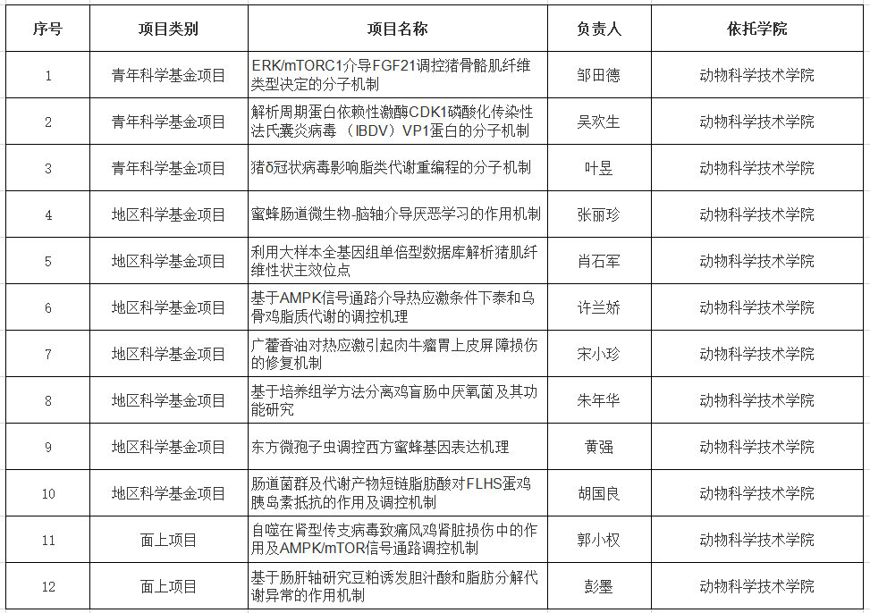 日前,国家自然科学基金委员会公布了2020年度集中接受申请项目的评审结果,公司胡国良、郭小权、彭墨、张丽珍、肖石军、许兰娇、宋小珍、朱年华、黄强、邹田德、吴欢生、叶昱等12位教师获得立项资助,总计经费433万元。其中郭小权,彭墨获得面上基金项目。
