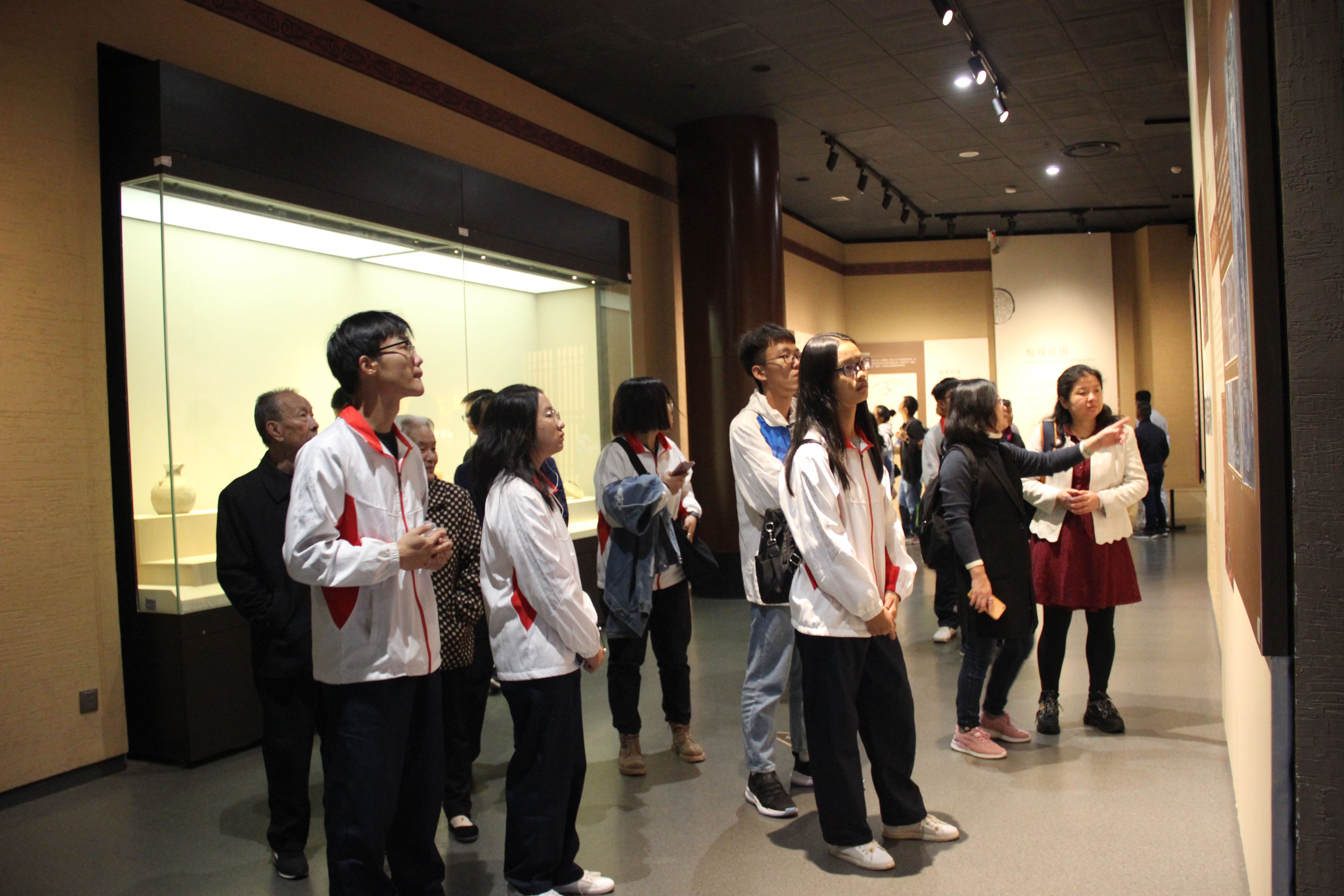 走进博物馆1号楼就是汉代海昏侯国成果出土成果展,展览以“发现发掘、文化阐释、人物解读、面向未来”为主线,分“惊现侯国、王侯威仪、墓主刘贺、保护共享”四个部分展开,总共出土了922件文物,涵盖了青铜器、陶瓷器、金器、玉石角器邓多个品类,陈列里的历史文物和史料文献深深地吸引着同学们,在轻松愉悦的参观过程中大家不仅领略到2000多年前精妙的汉代工艺,更深切地了解到那段厚重幽远的汉代历史。紧接着大家又参观了江西瓷器文化展和红色文化展,了解到江西在中华民族文明史、中国革命史中的重要地位与贡献。活动在大家共同努力下取得了圆满成功。