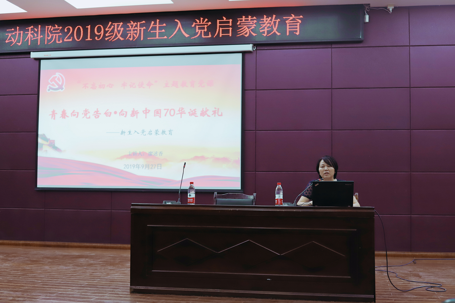 正值在全党中开展“不忘初心、牢记使命”主题教育之际,为加强老员工理想信念教育,吸引优秀的青年学子积极向党组织靠拢,9月27日晚,在老员工活动中心501报告厅,公司举办了2019级新生入党启蒙教育。公司党委副书记廖述香担任主讲人,2019级全体员工参加。