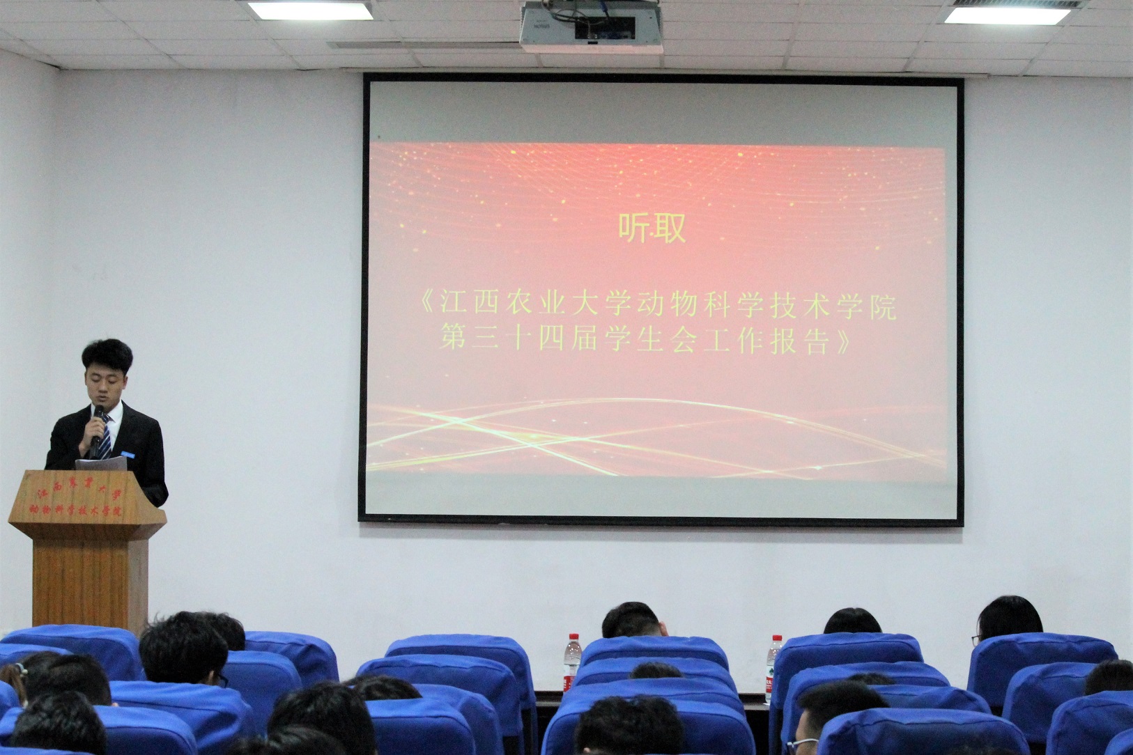 在全国上下深入贯彻习近平新时代中国特色社会主义思想,学习习近平总书记在纪念五四运动100周年大会上及5月21日视察江西时的重要讲话精神之际,6月11日晚,公司第三十五次学代会于院办201报告厅顺利举行。公司党委副书记廖述香老师、团委书记管国泉老师、学工办蔡敏茜老师和廖欢老师莅临指导,校员工会主席及各兄弟院系主席出席会议,各员工代表到场参会。