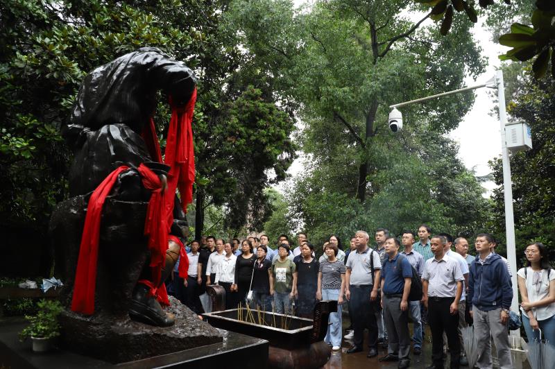 在红军坟与红军军医雕像前,教职工党员上了一堂感人肺腑的党性教育课。龙思泉是一名红军军医,为救治遵义百姓,错过与部队转移的时机而牺牲,年仅18岁。为了纪念这位疾病救人的红军军医,更为了怀念造福穷苦百姓的红军,红军坟被当地百姓自发地守护着,并且当作菩萨来祭拜。红军坟寄托了遵义人民对红军的尊敬和爱戴,成为军民鱼水情深的一个象征。