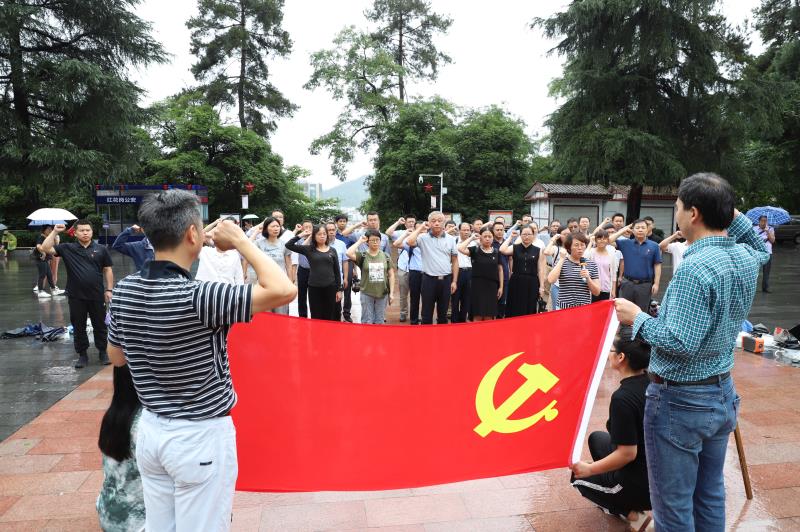 在向红军烈士敬献花篮后,一场铿锵有力的重温入党誓词活动开展。“我志愿加入中国共产党……”教职工党员面对红军烈士纪念碑庄严宣誓。