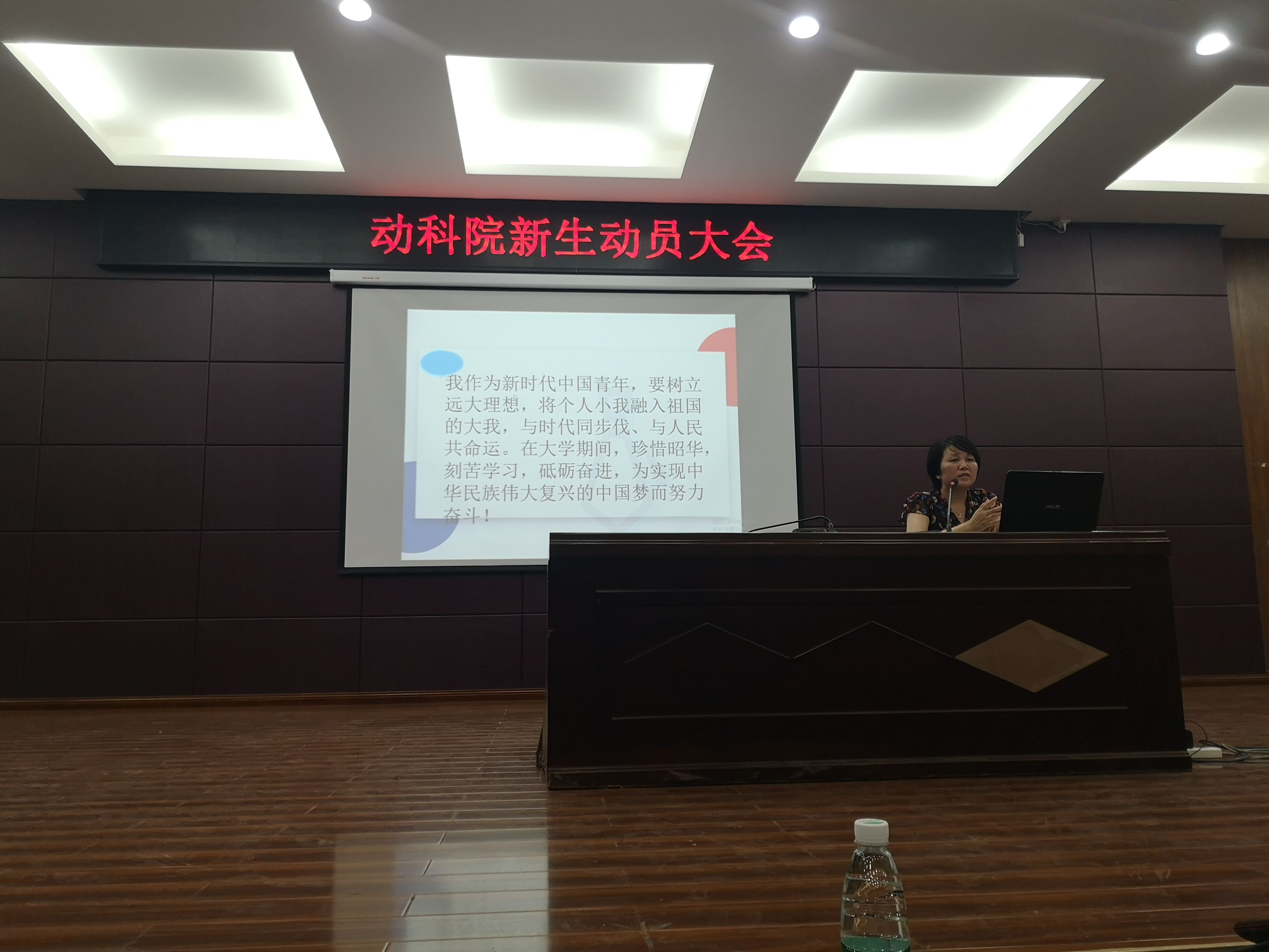 9月17日晚上,在老员工活动中心501报告厅,我院召开以“筑梦青春ž砥砺前行”为主题的新生见面会。见面会在青春告白祖国——“我和我的祖国”嘹亮歌声中拉开序幕。