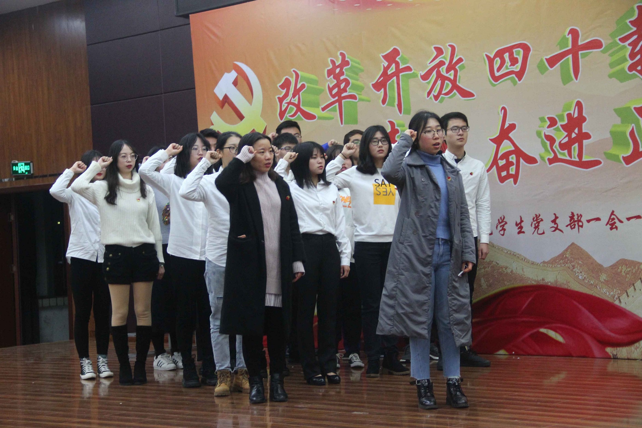此次一会一演以“改革开放四十载,青春奋进正当时”为主题,在观看庆祝改革开放四十周年纪念大会和学院党建工作视频集锦中拉开了序幕。