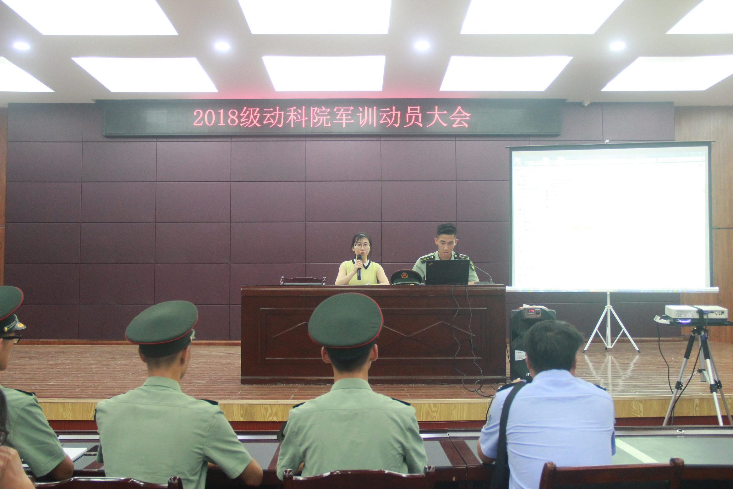 为增强新生国防观念和组织纪律性,了解和掌握基本的军事知识和技能,9月16日晚,公司了召开2018级新生军训动员大会。学工办廖欢老师出席了会议,教官队成员和2018级全体新生到场参会。教官队连长韩玮主持会议。