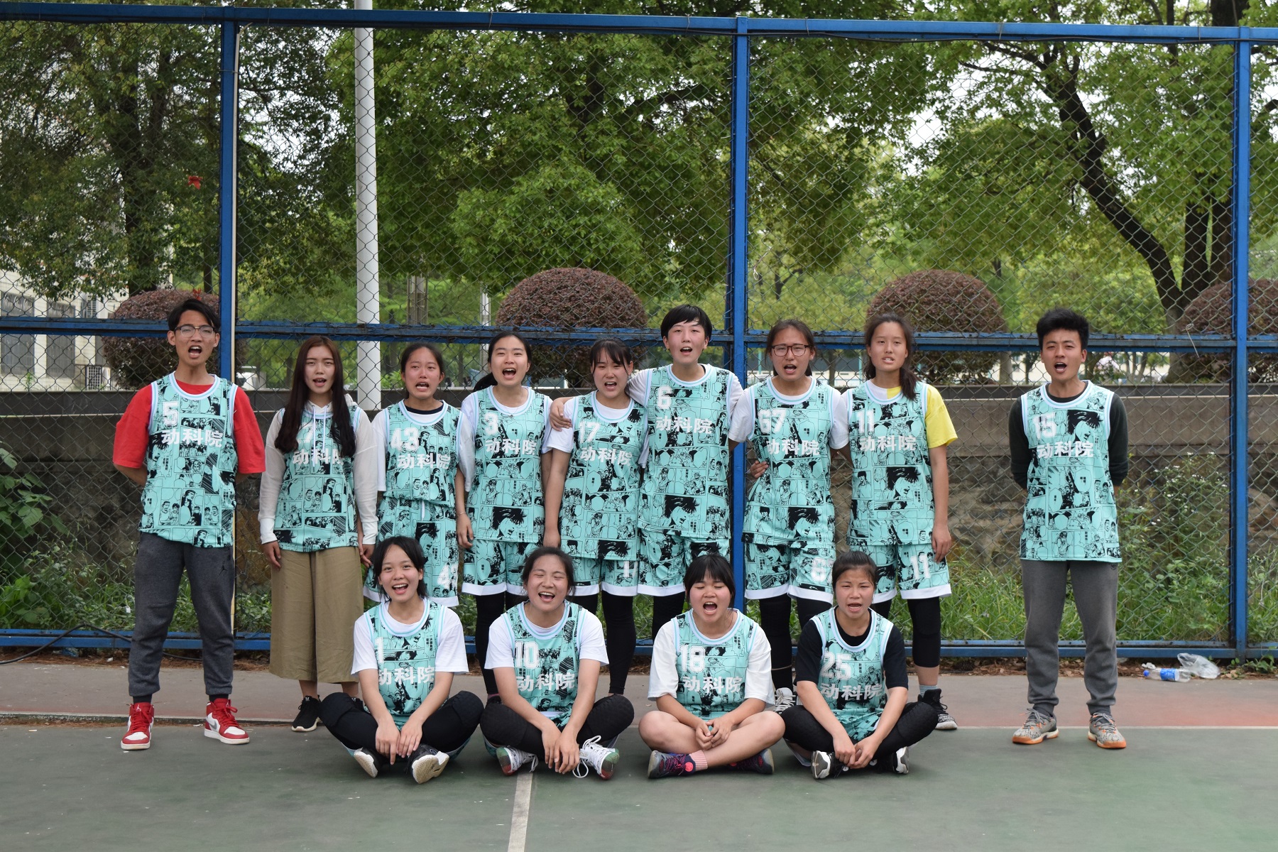 4月27日中午,公司女篮在“新生杯”篮球赛决赛中夺得亚军。院学工办老师蔡敏茜到场助威指导。