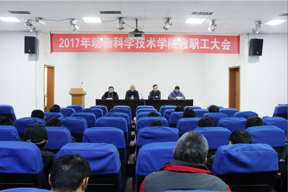 为深化教学改革,确保稳定发展,调动教职工积极性, 1月15日下午,动科院2017年度教职工大会在该院二楼报告厅举行。公司党委书记陆伟、经理胡国良、副经理曹华斌、工会主席郭小权及全体教职工出席大会。大会由公司党委书记陆伟主持。