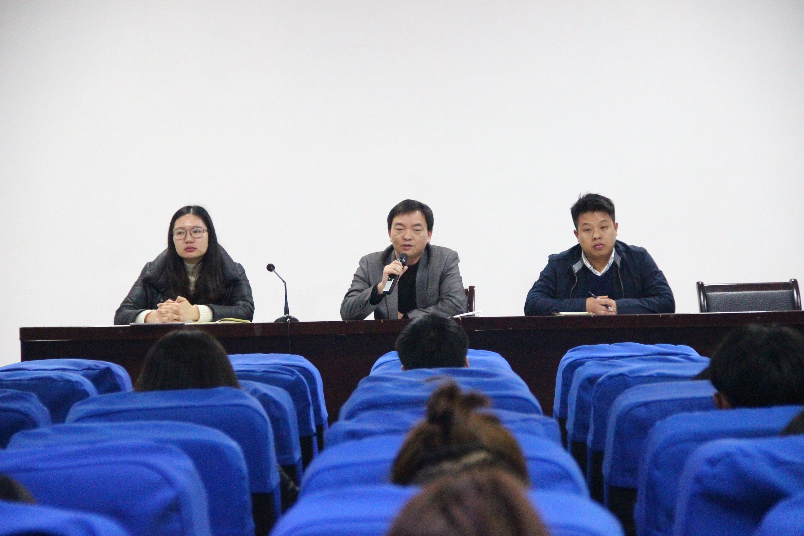 值此全国两会召开之际,为全面落实两会期间稳定工作的总体要求、保障新学期公司各项员工工作的顺利开展,3月6日晚,公司全体员工干部大会于院办201报告厅召开。院团委书记管国泉、学工办老师蔡敏茜和王稀珍出席大会,全体员工党员及员工干部到场参会。