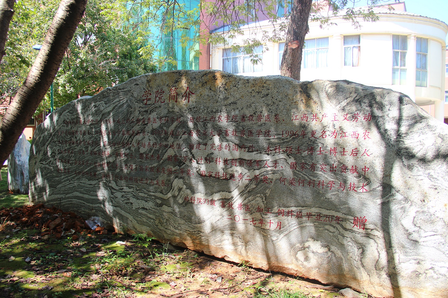 今年9月,我院93级畜牧、兽医、食品加工和动物营养与饲料科学四个班级毕业20年为公司捐建石碑。石碑气势雄伟、石刻字体丰劲,其上镌刻“2026世界杯官网”八个大字,端庄而不失大气,雅致而不失沉稳;石碑两侧“诚信,勤勉”四个字寓意深刻,是公司文化建设的一大景观,也将是弘扬优良院风、培养动科精神的标志物。