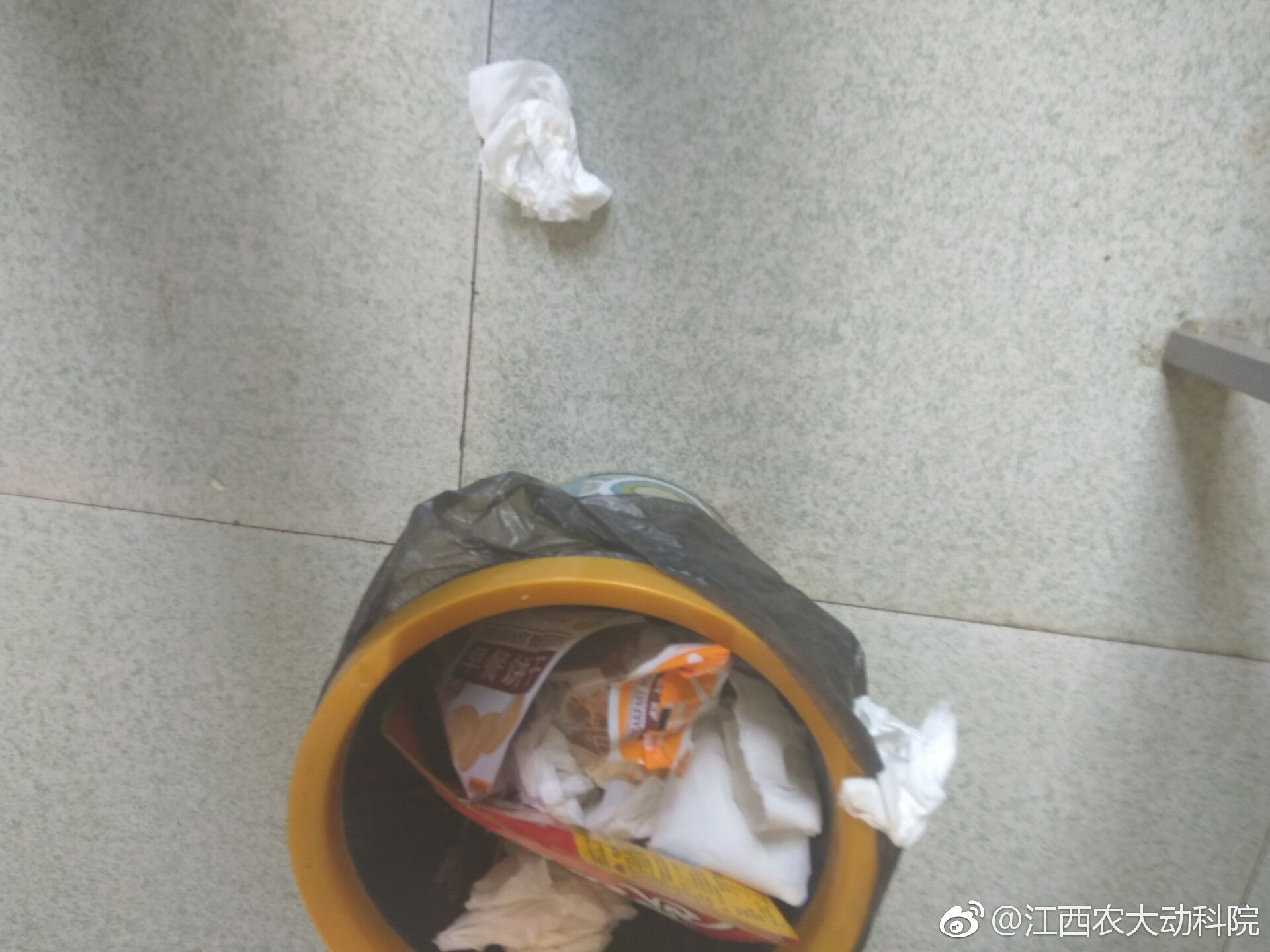 在所拍摄的照片中,主要问题依旧是卫生状况不好,教室抽屉、垃圾桶旁、走廊过道和户外场所依旧存在垃圾乱扔现象,大风天气甚至会有垃圾在天上飘。这一现象不仅影响了校园的美观,同时也表现出部分同学环保意识淡薄。
