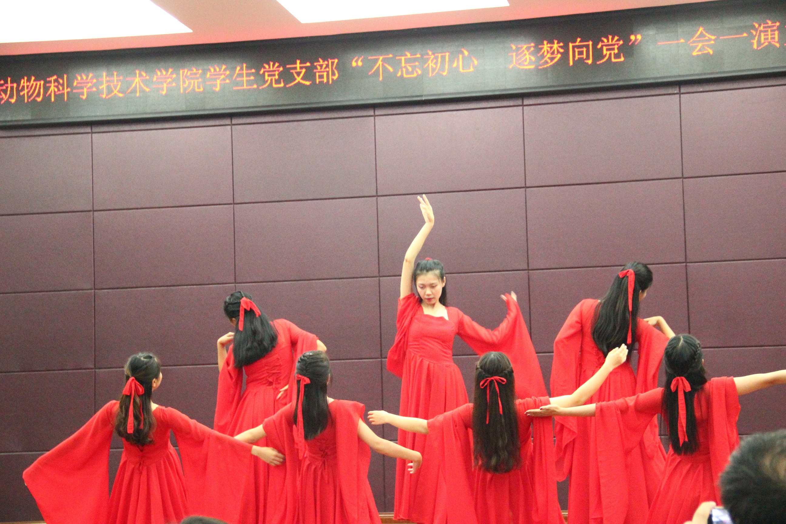 晚会以“不忘初心,逐梦向党”为主题。一首《红旗飘飘》拉开了晚会的大幕,歌声中展现了中国共产党的爱国情怀。随后的诗朗诵更是慷慨激昂,将现场气氛推至高潮。在之后的情景剧《党员的特权》中,演员们用最真挚的情感将红军长征途中的真情完美展现,一份不忘初心,坚定不移跟党走的决心,感染了现场的每一个人。最后,晚会在大合唱《没有共产党就没有新中国》中完美落下帷幕。