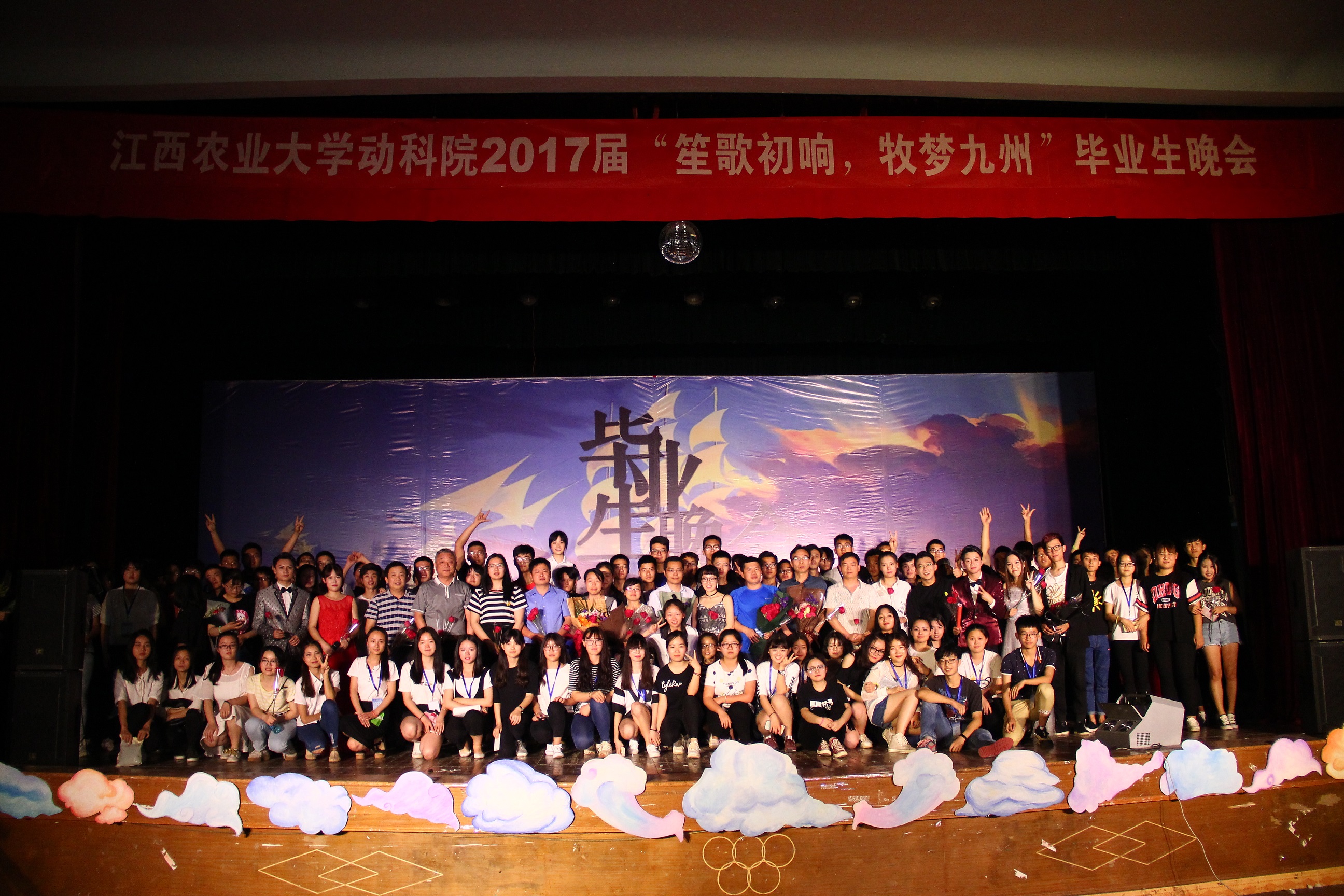 5月16日晚,公司2017届“笙歌初响,牧梦九州”毕业生晚会于校大礼堂圆满落幕。公司党委副书记胡春晓、后勤集团党总支书记杨秀江,公司党委书记陆伟、经理胡国良、副经理曹华斌和通威公司代表以及各毕业班班主任齐聚一堂,与公司全体同学共同观看了此次晚会。