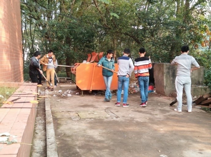 上午9点,员工第一党支部大三全体预备党员和大二全体入党积极分子在院办门口集合,并进行点到。根据支部书记的要求,在院员工会生活部的大力配合下,生活部部长对打扫区域进行了划分,安排人员和分配清洁工具。在此次活动中,预备党员做好了带头作用,不怕累,不怕脏,在完成了自己的本职任务后都积极主动帮助学弟学妹一起清扫。值得赞赏的是,大二的入党积极分子没有一个抱怨的,他们尽心尽力完成任务。经过一上午的全体努力,院办周边的枯枝落叶少了,塑料垃圾没有了,剩下的是一片整洁干净的开阔场地。