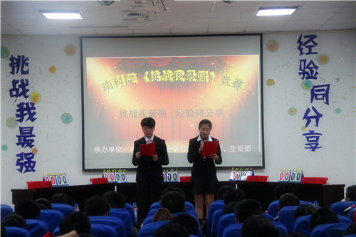 经过初赛的笔试,共有5个班级15位选手晋级决赛。比赛开始,选手们胸有成竹,首战告捷。在“唇枪舌战”环节中,五支队伍凭借自身强大的知识储备量和卓越的思辨能力征服了现场的大众评委及所有观众。第一轮比赛结束后,动医1503班和动科1501班分数领先,晋级第二轮最终对决。“一决高下”环节中,两队轮流作答,分数紧咬,互不相让,现场气氛十分紧张。随后的“火眼金睛”视频纠错环节,选手们更是集中精力,不敢有半点松懈。观众们也不甘寂寞,在“全民参与”环节,外援团们出谋划策助力答题,现场好不热闹。 最终,动科1501班以总分145分摘得桂冠,动医1503班斩获“最佳组织奖”,动科1501班张仕豪赢得了“最佳人气奖”。