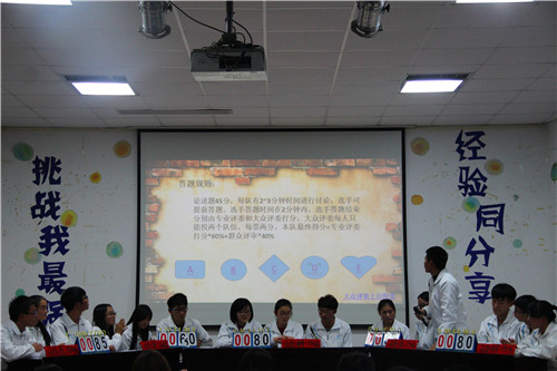 12月11日晚,公司首届《挑战我最强经验同分享》知识竞赛在院办201报告厅顺利举行。公司党委副书记杨秀江,团委书记管国泉,学工办老师杨静以及校学习部部长熊艳艳,校保卫部部长帅迪全等作为比赛嘉宾评委和参赛班级一同观看了比赛。