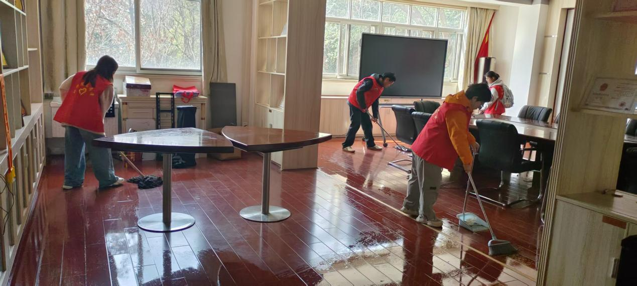 活动伊始,团支书带领全体成员重温雷锋精神的时代内涵,并结合青年员工使命号召同学们将崇高精神融入日常学习生活,以切实行动服务校园与社会。随后,同学们满怀热情地投入了志愿服务实践,清扫学院会议室,擦拭桌椅,营造干净整洁的办公空间;整理“职工之家”,有序归置各类物品,擦拭设施,营造舒心、温馨的休憩环境;规整校园共享单车,扶正摆齐,有效维护校园出行秩序与美观……通过一系列劳动与服务,支部成员不仅美化了校园环境,更在汗水中深化了对雷锋精神的理解,让雷锋精神在新时代的校园里绽放出璀璨的光芒。