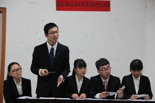 4月8日晚七点,由公司员工会主办、演辩部承办的“动科杯”班班辩论赛决赛在院办201报告厅顺利举行,院团委书记管国泉,学工办老师杨静莅临现场并观看了比赛,出席本场比赛的还有各兄弟院系辩论负责人及院团学委员们。