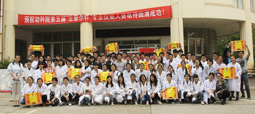 本次比赛反响热烈,前期共有216名同学报名参加,经过初赛理论知识的考察,共有26组99人成功闯入决赛进行现场技能PK。参赛队伍被分为专业一组,专业二组和非专业组三个组别展开竞争。比赛内容主要有猪的解剖、犬胃切开缝合手术,鸡蛋品质测定以及禽霍乱病理检查等专业实验。由动医、动药专业员工带来的《兽医之歌》正式拉开了大赛序幕,选手们穿戴规范,秩序井然地完成各项实验操作。随后由各专业老师组成的评审团根据选手现场的发挥,操作的熟练程度以及实验规范性与用时长短进行评判。历经两个多小时的实践技能展示,最终专业一组的张瑜团队,专业二组的王俊团队,非专业组的龚莉团队荣获一等奖。